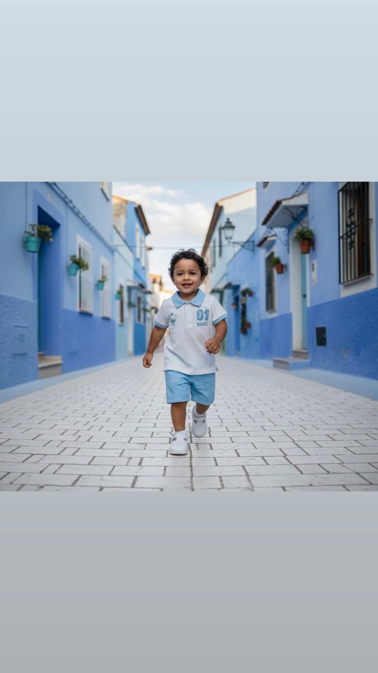 2-delig setje wit/blauw